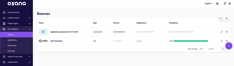 Here we see two sources of personal data stores: an Okta SSO instance and an assessment that will be sent to owners of data stores that sit outside of Okta.
