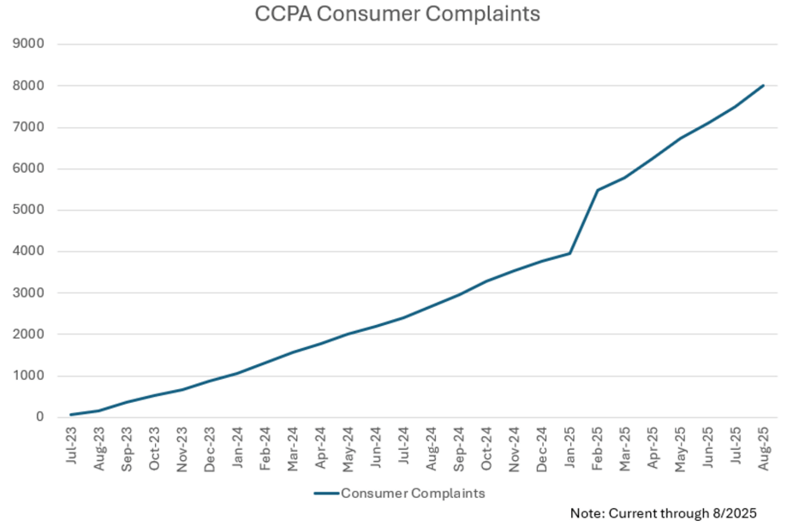 CPPA Consumer Complaints from July '23 to September '25 (Source: CPPA Enforcement Update)