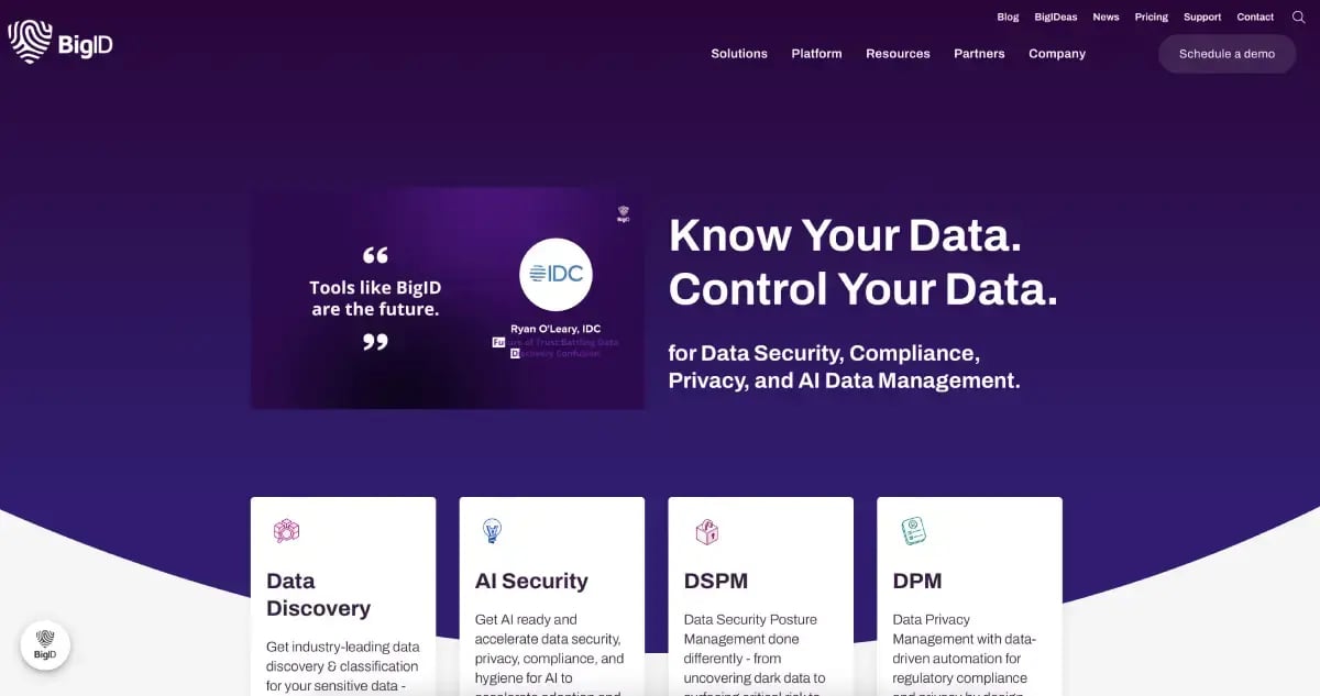 This platform excels in data discovery and privacy governance, using AI-driven technology to find and classify personal data across structured and unstructured data sources.
