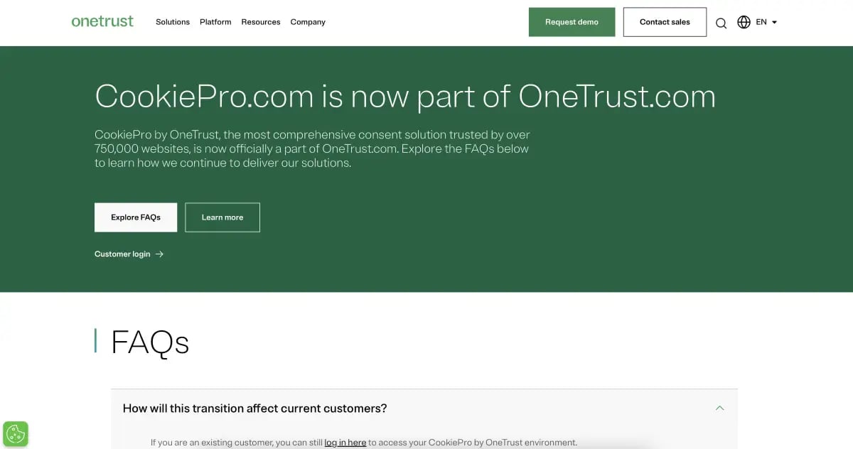 CookiePro is a OneTrust product explicitly designed to manage cookie consent. If your priority is web compliance, especially regarding cookies and tracking, it provides a streamlined, easy-to-implement solution.