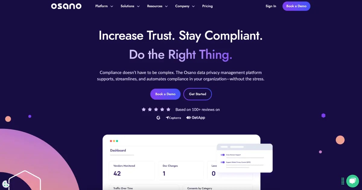 Osano is a simpler, more user-friendly alternative to OneTrust. It’s designed with SMEs in mind, but it scales effortlessly. It provides all the essential privacy management tools without the complexity or high cost often associated with solutions like OneTrust.