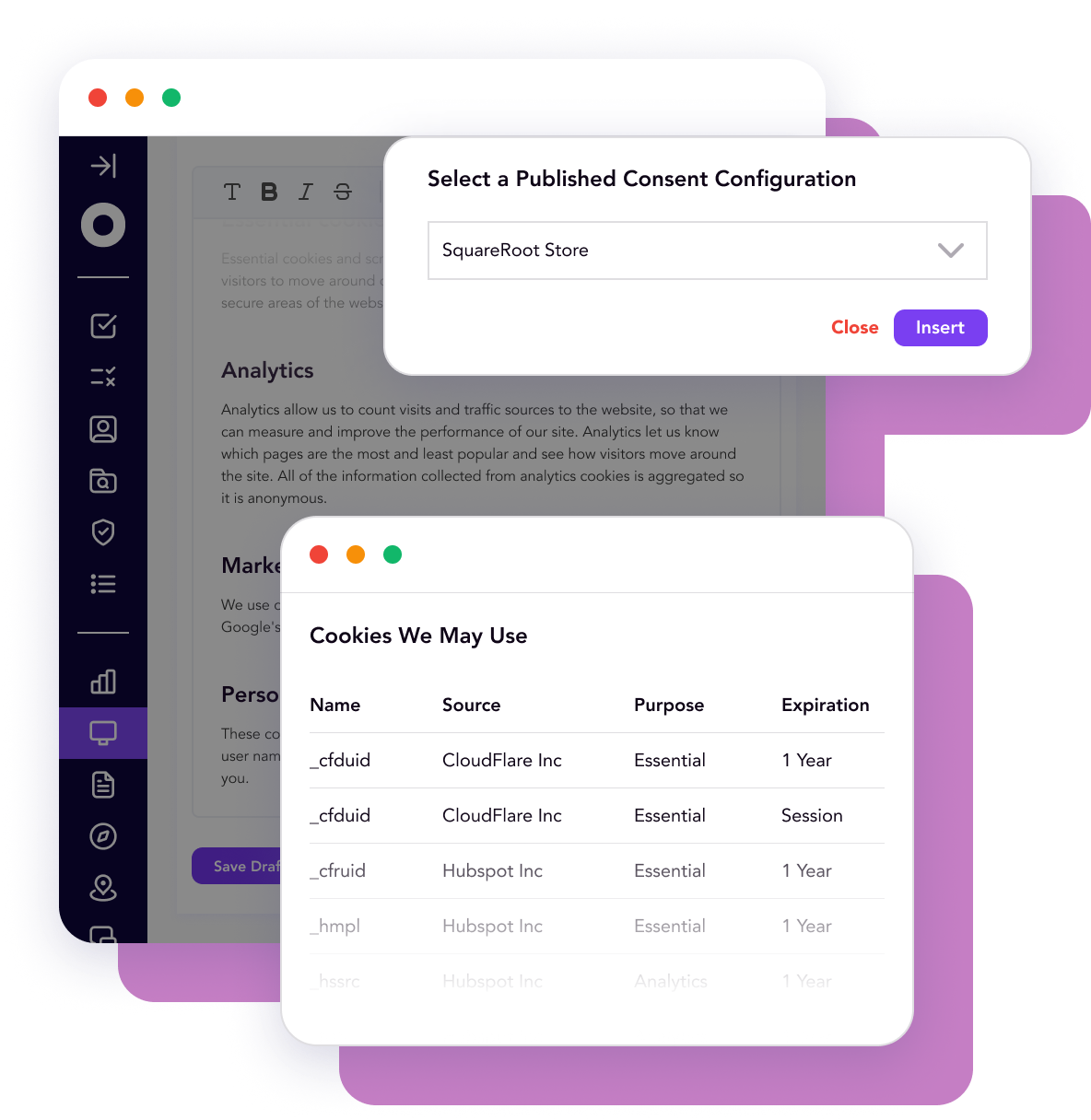 For customers of Osano’s Cookie Consent product, embed auto-generated cookie disclosures that match your Consent Preference Drawer. Maintain consistency across your site with minimal effort and no need for developer intervention.