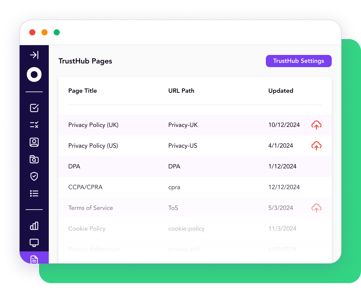 From GDPR representation to ready-to-go privacy policy templates, TrustHub empowers your team with the tools you need to demonstrate transparency and give you peace of mind.