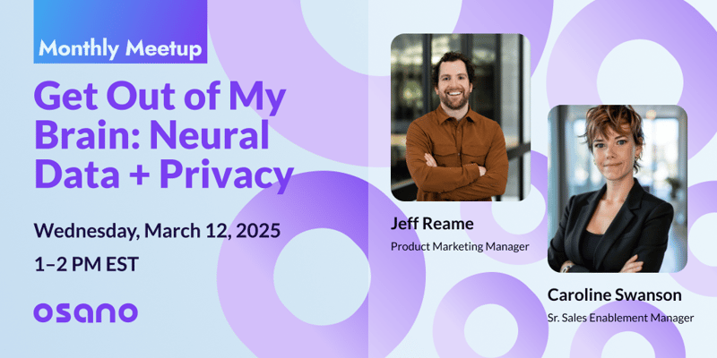 In March’s edition of our monthly meetup series, Osano’s Product Marketing Manager Jeff Reame and Senior Sales Enablement Manager Caroline Swanson will host an open discussion around the intersection of neural data and data privacy.