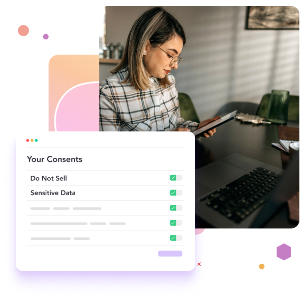 Both consumers and privacy managers can manage settings with the flip of a few toggles. Embed user controls right into your site or mobile app.