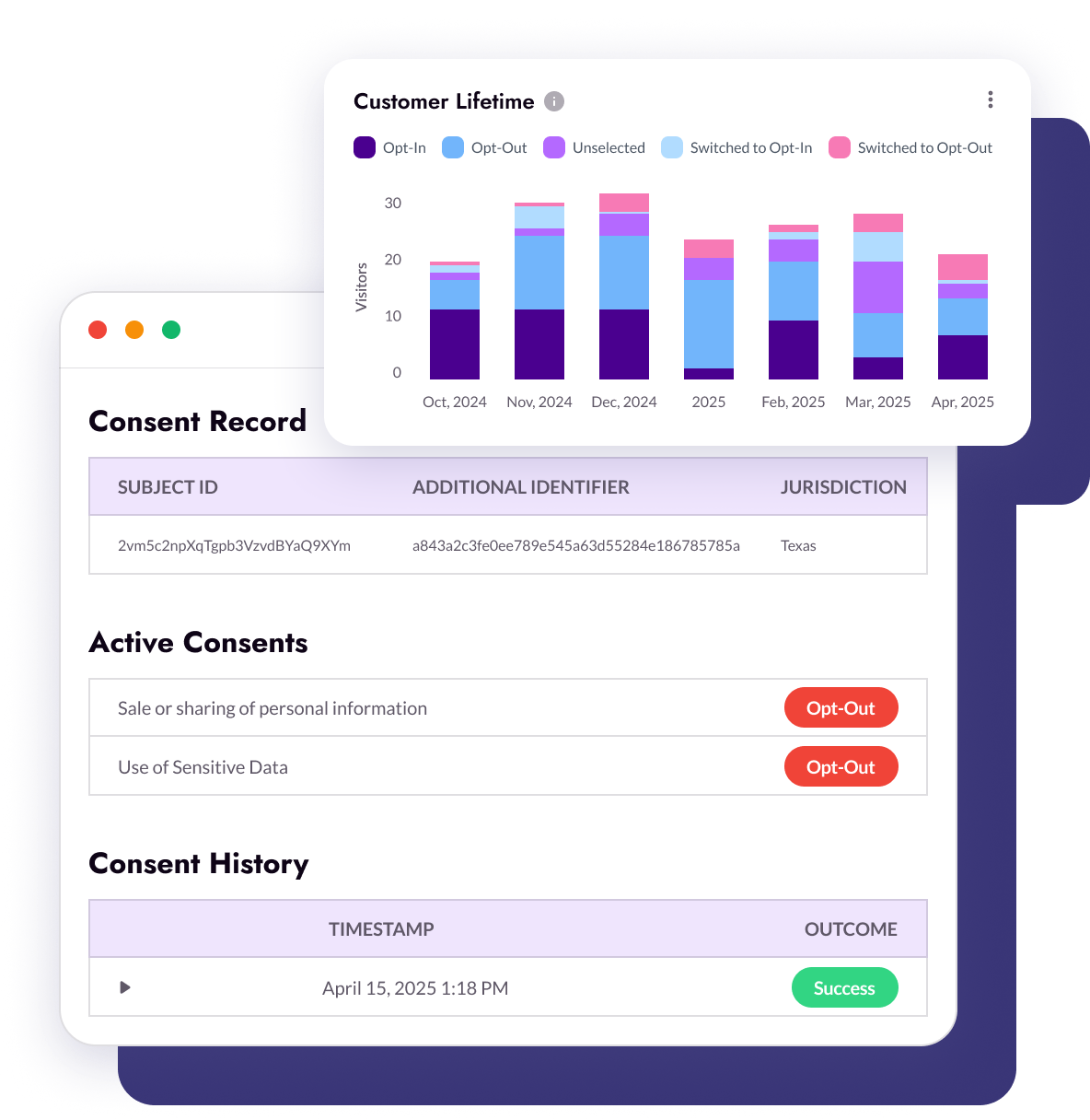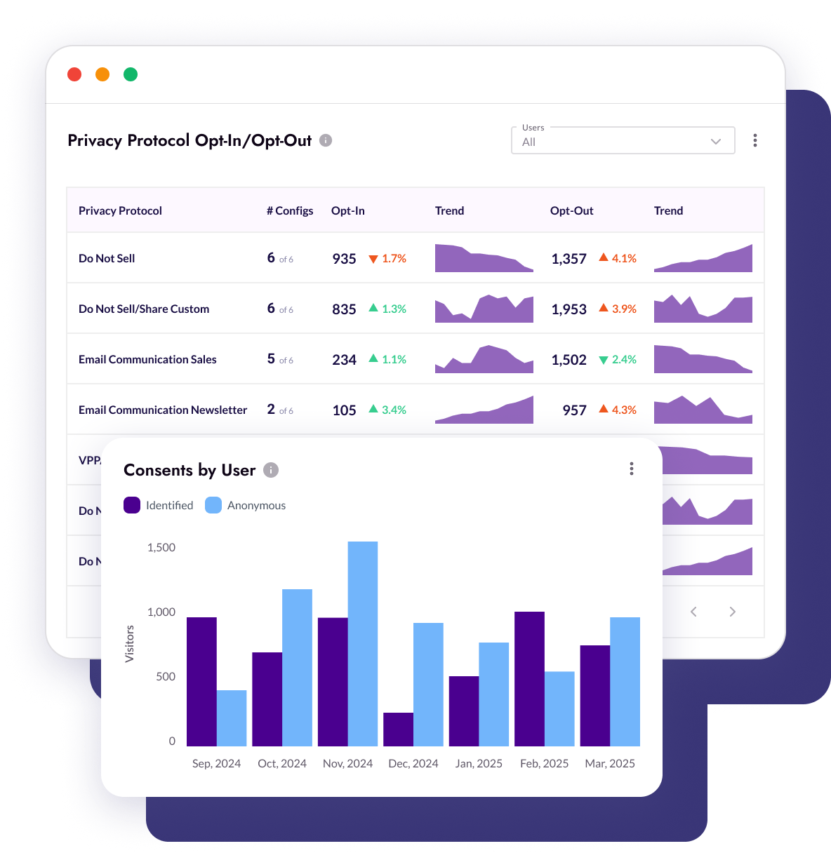 Highly visual, simple-to-read charts put consent data into context and help you zoom in on the information that matters.