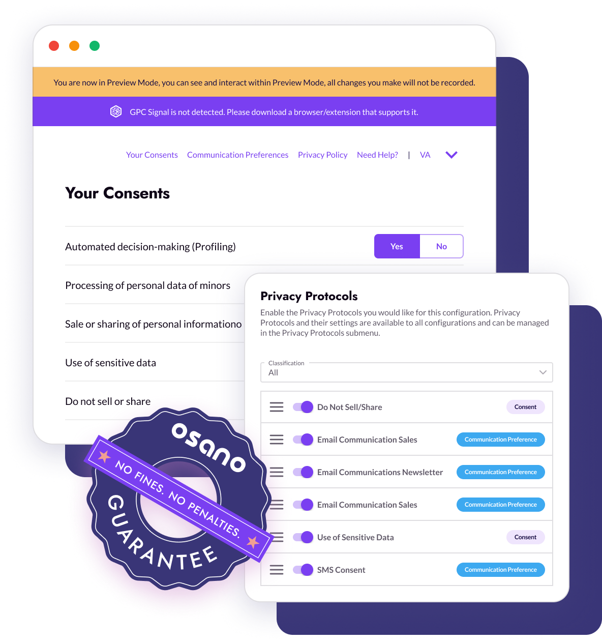 With Osano, building, managing, and scaling your privacy program becomes simple. Schedule a demo or try a free 30-day trial today.