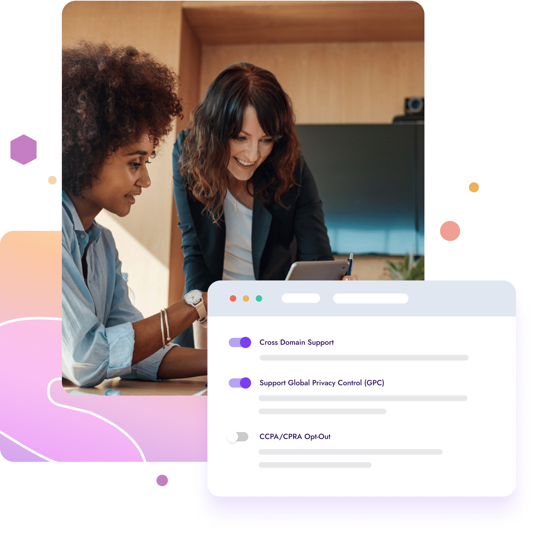 Control users’ personal data flows to third parties and targeted advertising based on their consent.