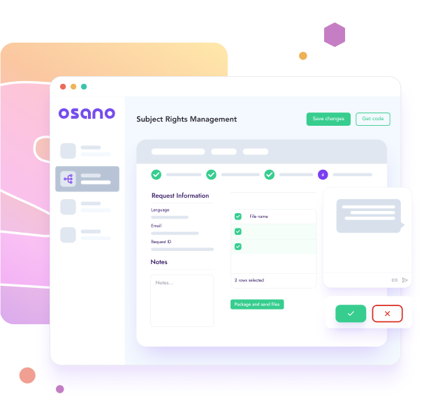 When a data subject makes a request under the CCPA, you have to meet that request within 45 days. Responding to DSARs takes time away from more strategic initiatives, and 45 days can go by pretty quickly if you experience a high volume of requests. Osano streamlines the subject rights request process, automates common request types, and enables a faster, more accurate workflow.
