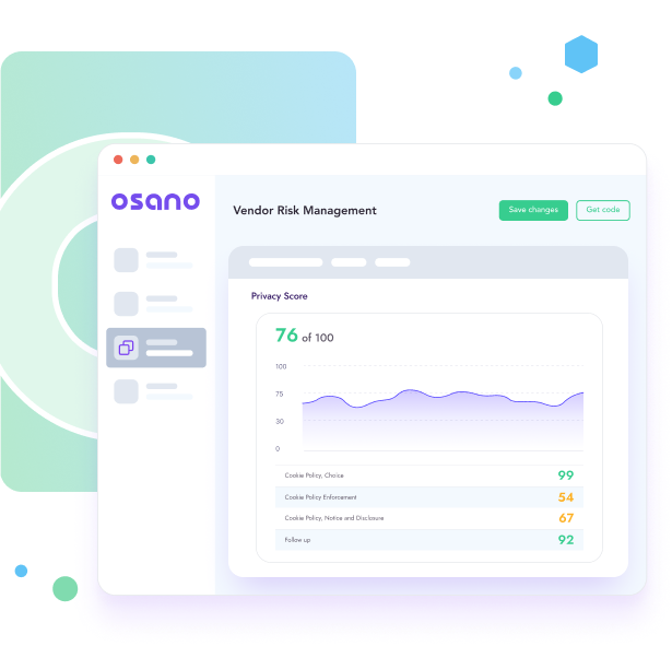 - Assess vendors at a glance with Osano’s Vendor Score, calculated via a 163-item proprietary ontology based on NIST and ISO standards.