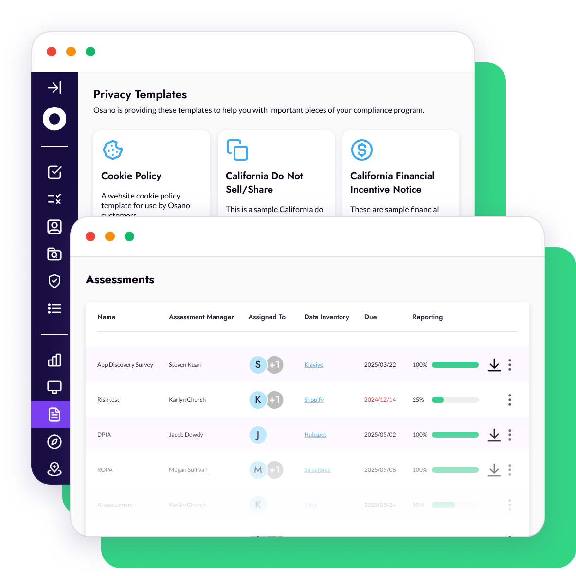 Providing regulatory guidance can be thankless work—but protecting the business is critical. Show your stakeholders that compliance can be a strategic business driver, not a blocker. Rely on Osano to facilitate assessments, report on KPIs, shore up risk management, and more.
