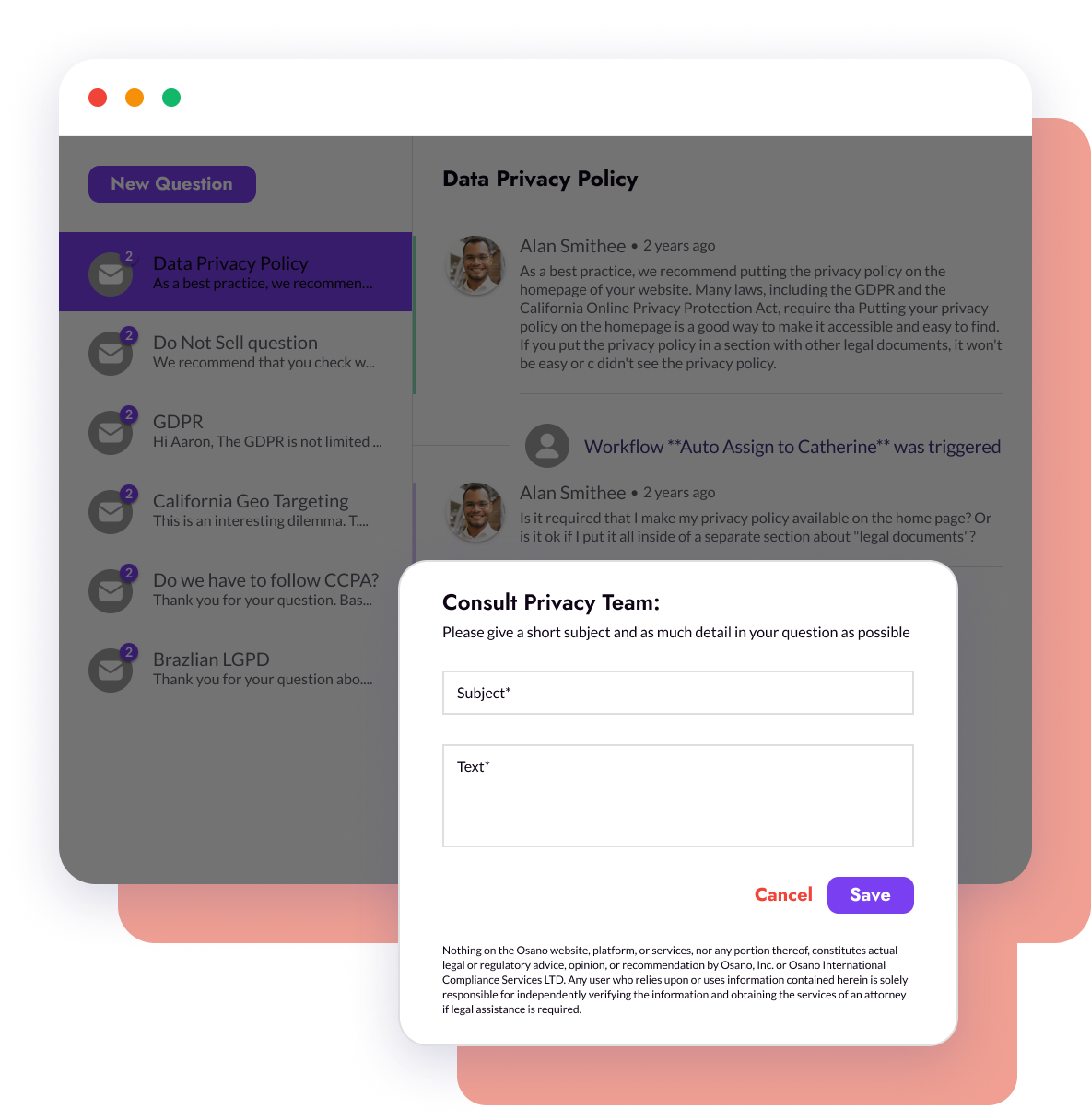 Consult the Privacy Team and ask legal and privacy professionals questions on compliance