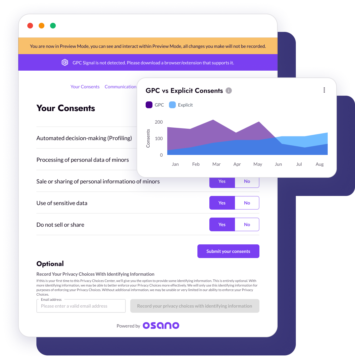 A privacy center, on the other hand, is for communicating your overall privacy posture and giving your users the opportunity to decide how they want their personal information to be handled.