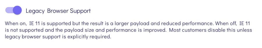 One element of SEO is page performance. Customers who don’t need to support IE 11 now have the ability to turn off support for end-of-life legacy browsers. Osano performance is improved when legacy browser support is disabled.